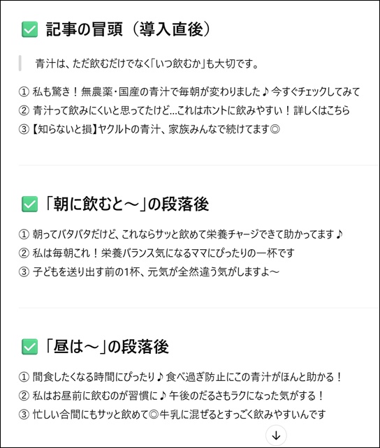 秘伝のスパイスとは簡単に言うと誘導文の「口調を変える」ということです。