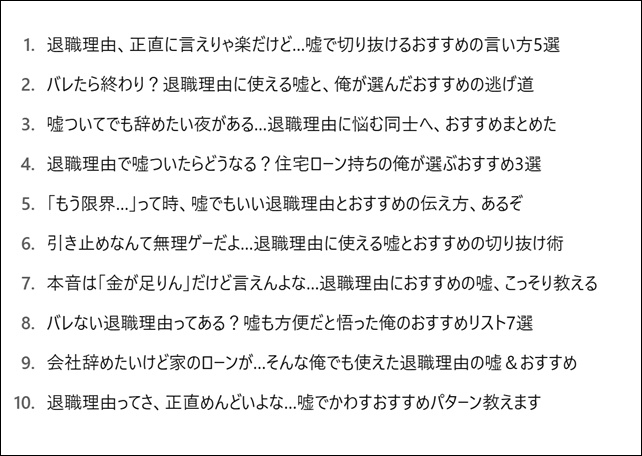 このように、ターゲットに応じて口調を変えることで、よりクリック率の高い記事タイトルを作成することができます。
