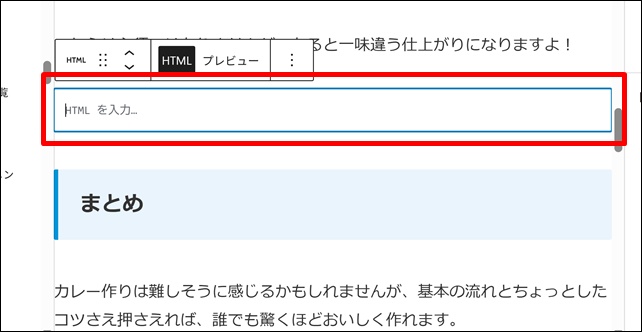 するとこのようにHMTLを入力するボックスが表示されます。