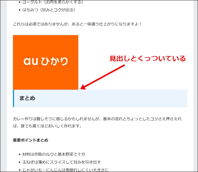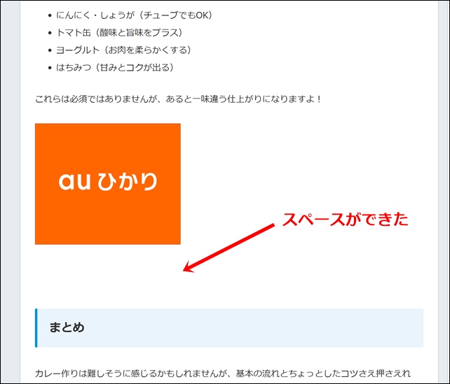 でも見出しに広告がくっついていますね。そこでここにスペースを入れて見栄えを良くしていきます。