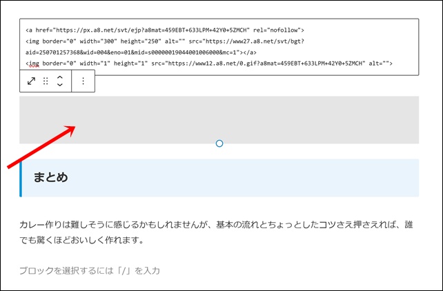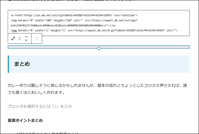 ここに先ほどコピーしたA8ネットのリンクを貼り付けましょう。