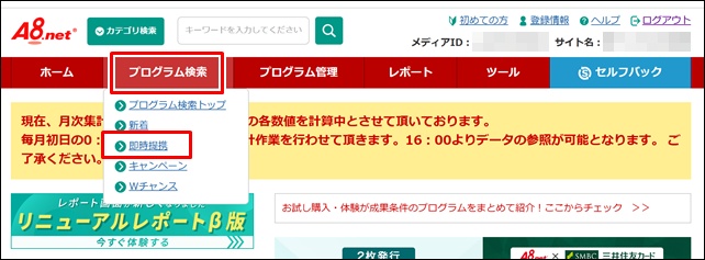 ※即時提携とは審査なしで掲載できる広告のことです。