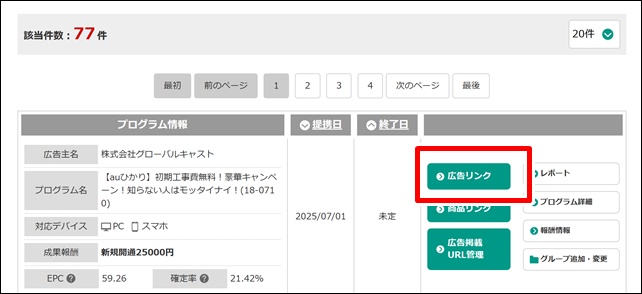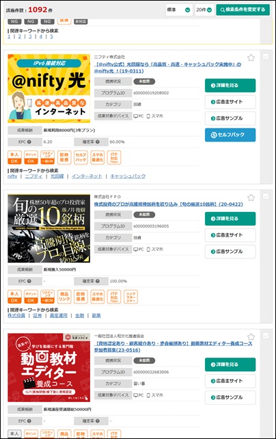 即時提携できる広告が表示されますので、この中から広告を選びます。