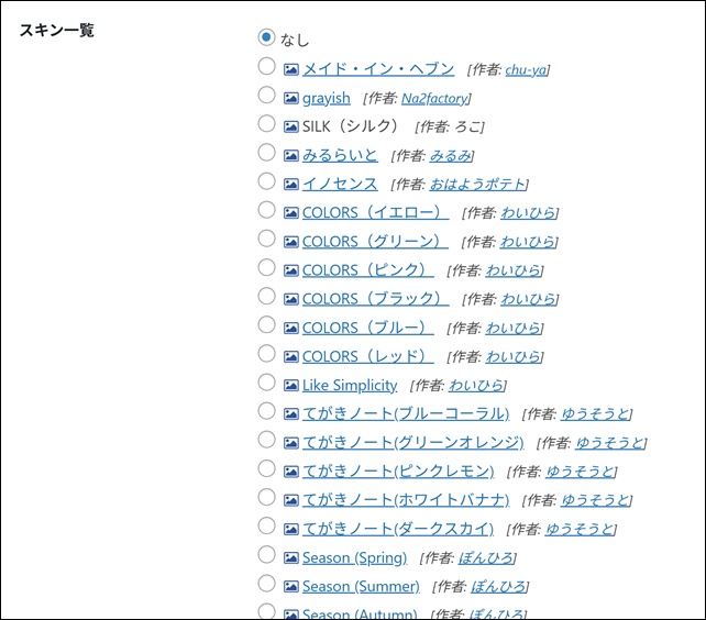 スキン(デザイン)の一覧が表示されるので、お好きなものを選びましょう。