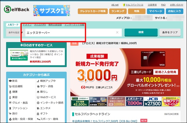 それでは自己アフィリエイトでエックスサーバーに登録しましょう。