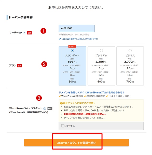 ③WordPressクイックスタート・・・こちらはチェックを外したままでOKです(ブログを立ち上げる手間は変わりません)。