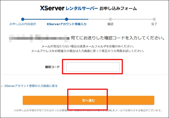 「Xserverアカウントの登録に進む」をクリック。