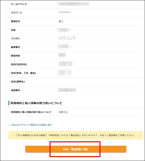 「SMS・電話認証へ進む」をクリック。