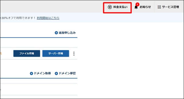 上部の「料金支払い」をクリック。