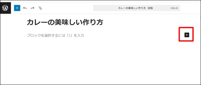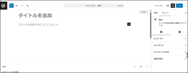 すると新しいブロックが追加されます。新しいブロックは「段落」になっているので、ここに記事を書いていきます。