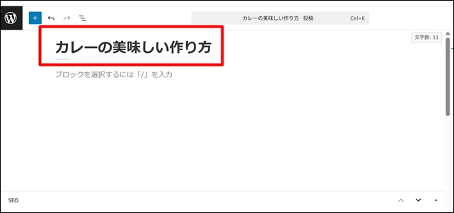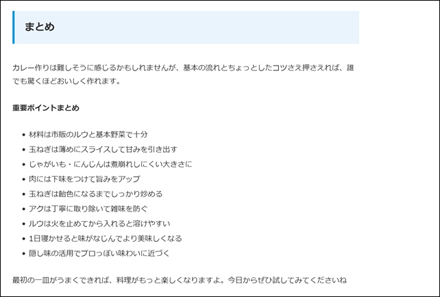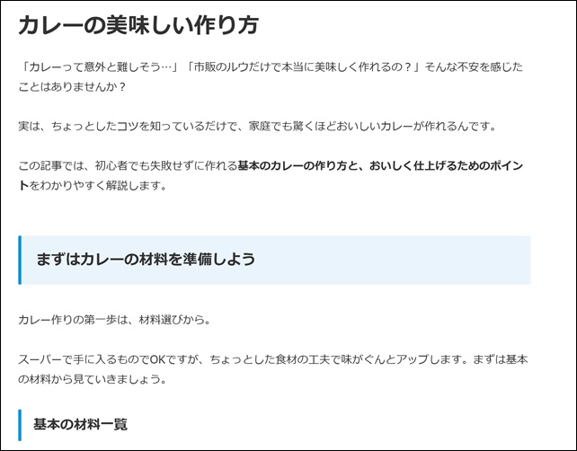 今回の記事の場合「カレー 美味しい 作り方」なので、