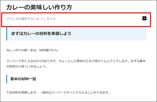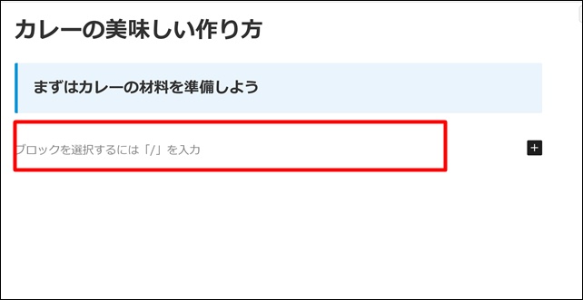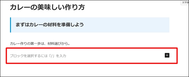 するとこのように新しい段落ブロックが追加されるので続きを書いていきましょう。