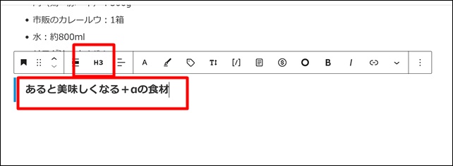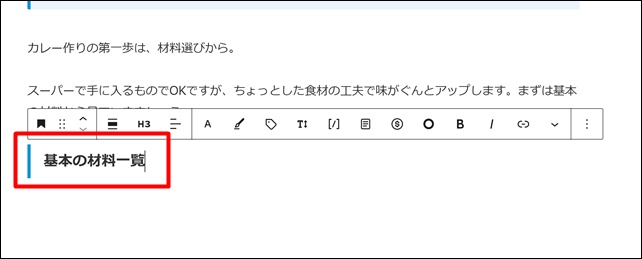先ほどと同じように「H3」を選択して小見出しのタイトルを入力します。