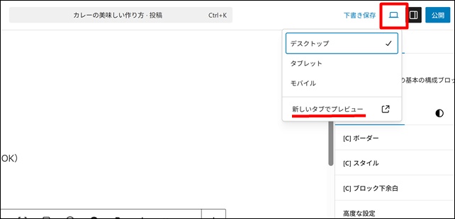 実際に記事がどのように表示されるのかチェックすることができます(プレビューと言います)。