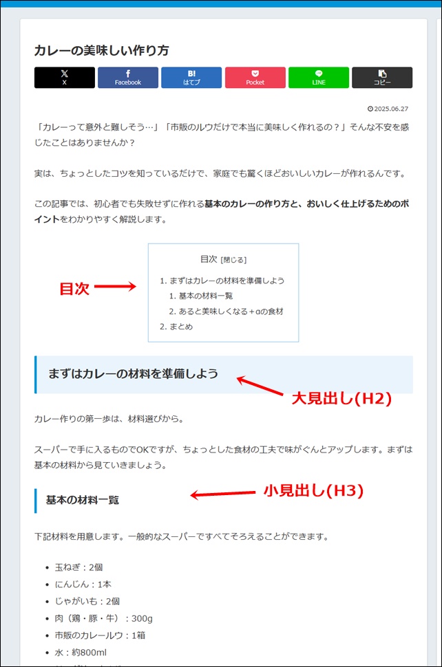あとは、二つ目以降の大見出しを順番に作っていくだけです(今回は省略します)。