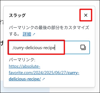 私の場合、記事のスラッグは狙っているキーワードを英語にして「-(ハイフン)」でつなげる形にすることが多いです。